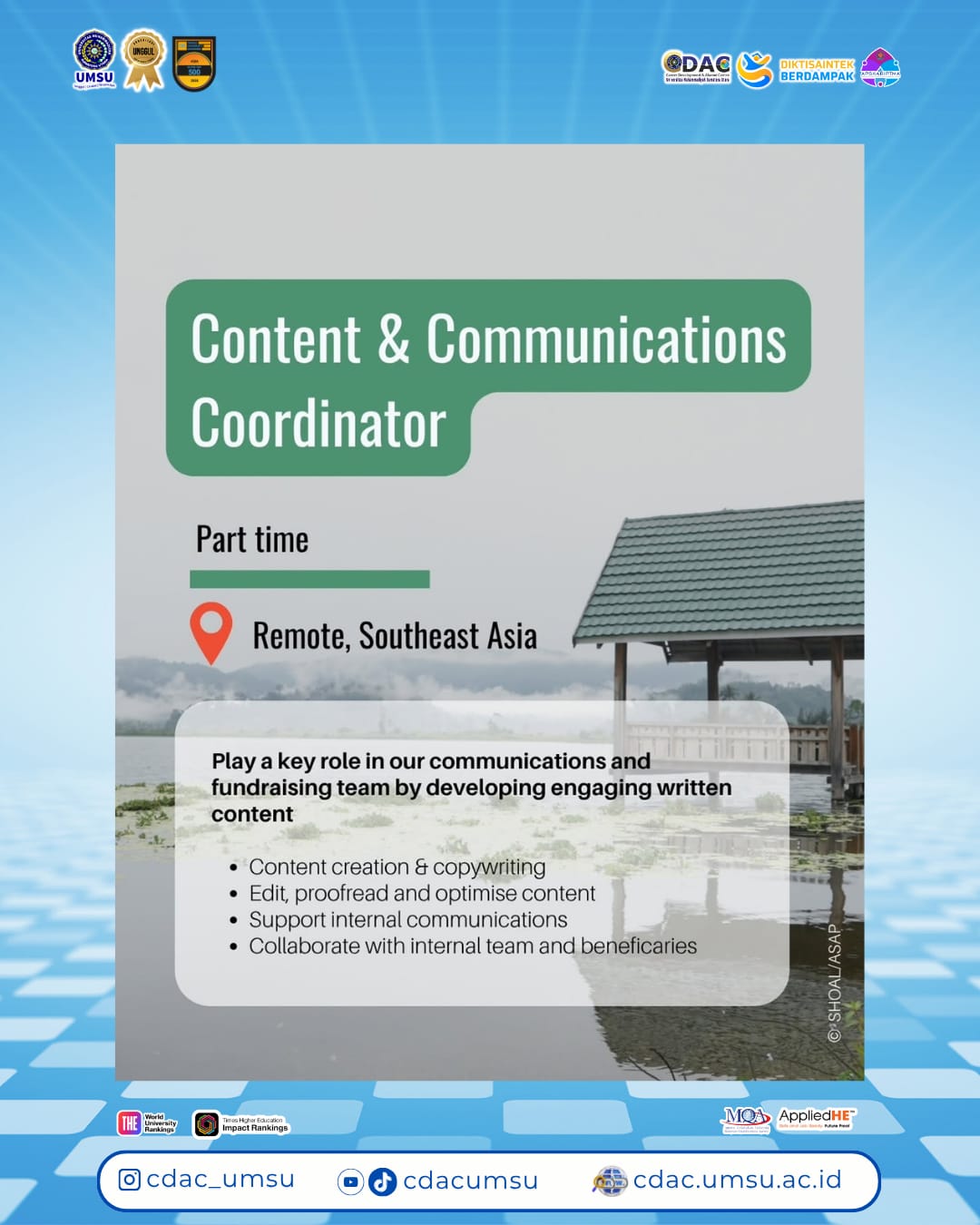 Bertanggung jawab merancang, mengelola, dan mengoordinasikan seluruh strategi konten dan komunikasi organisasi/perusahaan. Mengembangkan perencanaan konten untuk berbagai kanal (media sosial, website, email, dan publikasi lainnya), memastikan pesan yang disampaikan konsisten dengan branding, serta mampu menjangkau target audiens secara efektif