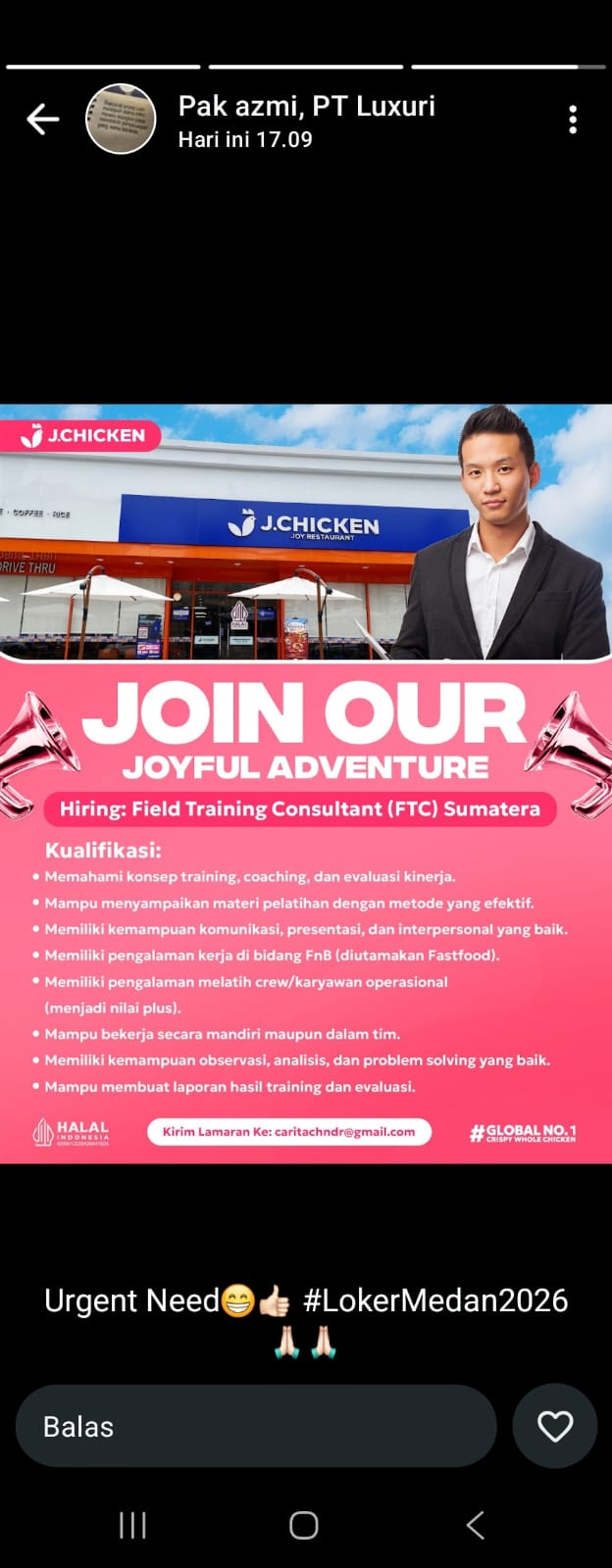 J.Chicken adalah brand restoran cepat saji (fast food) yang bergerak di bidang Food & Beverage (F&B) dengan menu utama ayam goreng crispy dan berbagai pilihan makanan serta minuman pendamping. J.Chicken hadir untuk memberikan pengalaman makan yang lezat, higienis, dan terjangkau bagi masyarakat.