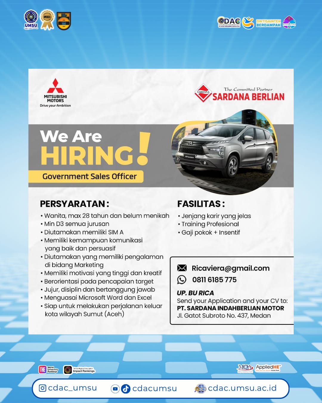 Government Sales Officer adalah posisi penjualan profesional yang fokus menjalin hubungan, mempromosikan, dan menjual produk atau jasa perusahaan kepada instansi pemerintah (B2G), baik pusat maupun daerah. Tanggung jawab utamanya meliputi pemetaan peluang proyek, negosiasi tender/kontrak, dan mencapai target penjualan dengan membangun kemitraan jangka panjang yang strategis.