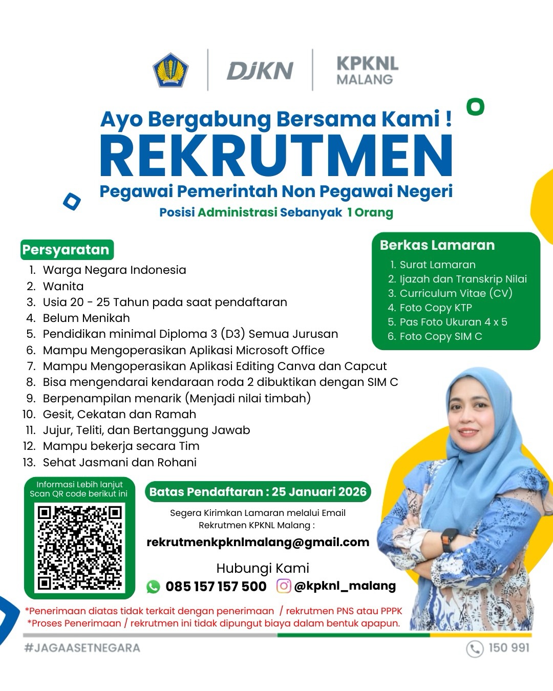 Kirimkan lamaran melalui email rekrutmen KPKNL Malang: rekrutmenkpknlmalang@gmail.com