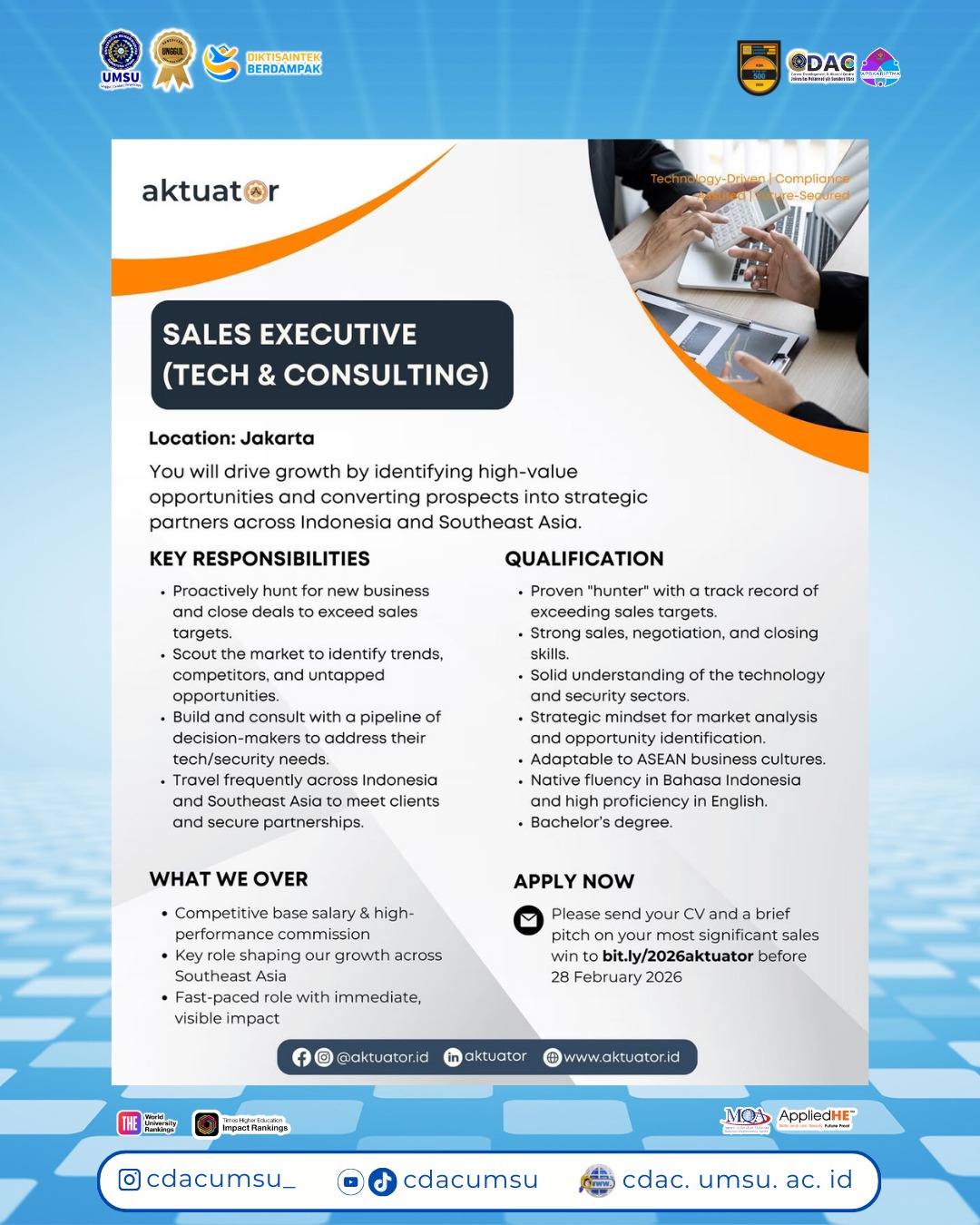 SALES EXECUTIVE ( TECH & CONSULTING)Universitas Potensi Utama • Kota Jakarta Pusat, DKI Jakarta