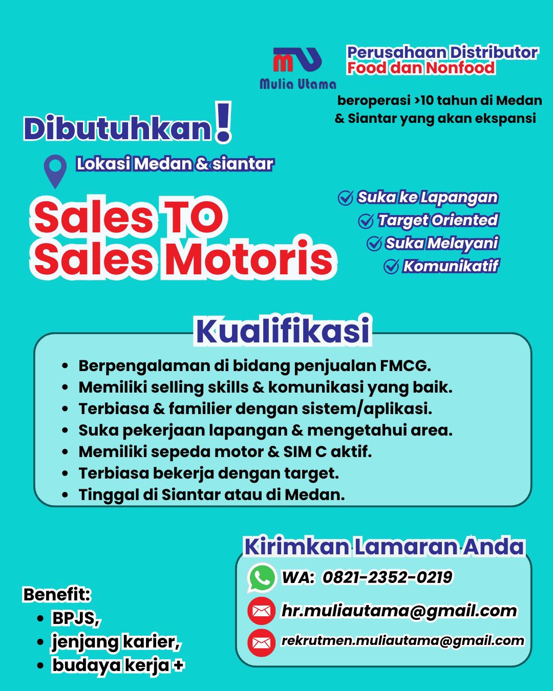 Sales To Sales Motorisperusahaan Distributor Food dan Nonfood • Kota Medan, Sumatera Utara
