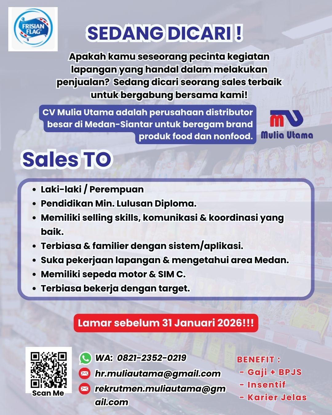 CV Mulia Utama adalah perusahaan distributor besar di medan - siantar untuk beragam brand produk food dan nonfood