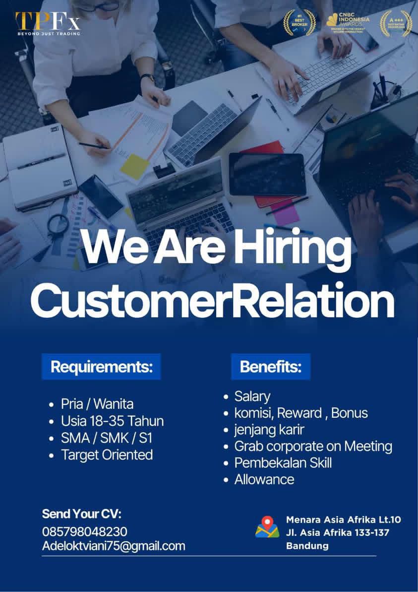 We are hiring Customer Relation TPFxTPFx • Kota Bandung, Jawa Barat