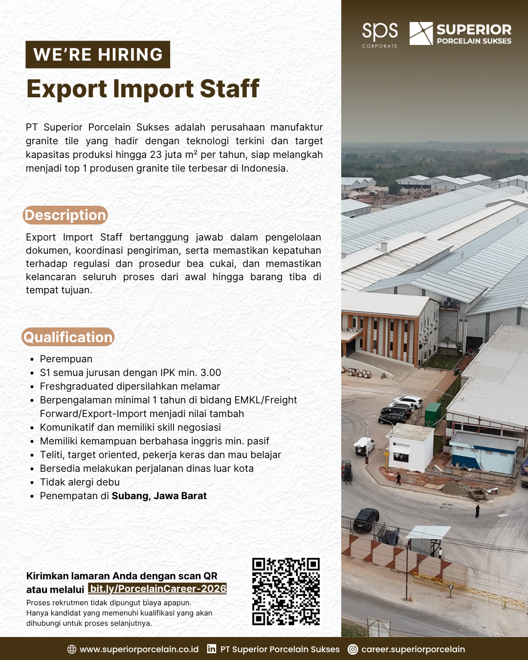 kirimkan lamaran anda melalui bit.ly/PorcelainCareer-2026